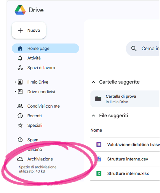 In caso di Google Drive, la quota di spazio utilizzato può essere individuata seguendo i seguenti passi: