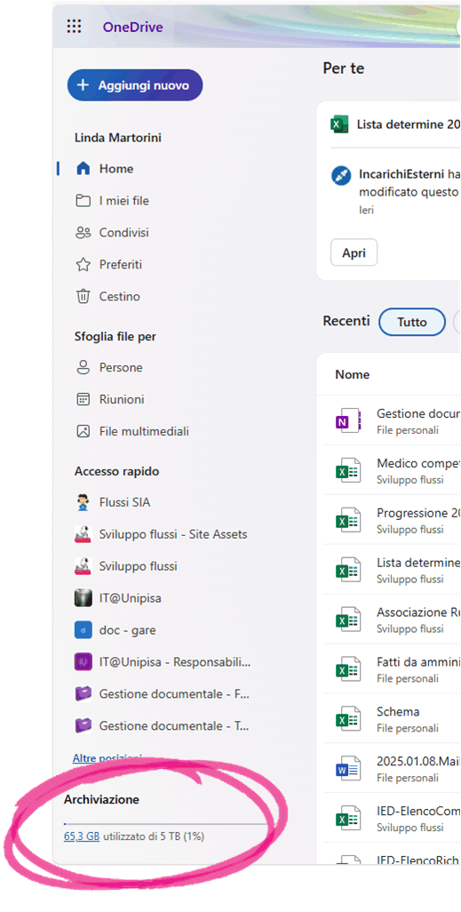 In caso di One Drive, la quota di spazio utilizzato può essere individuata seguendo i seguenti passi: